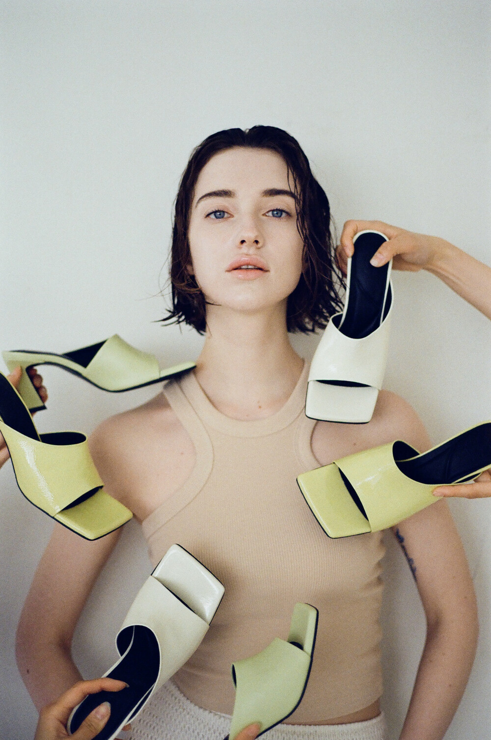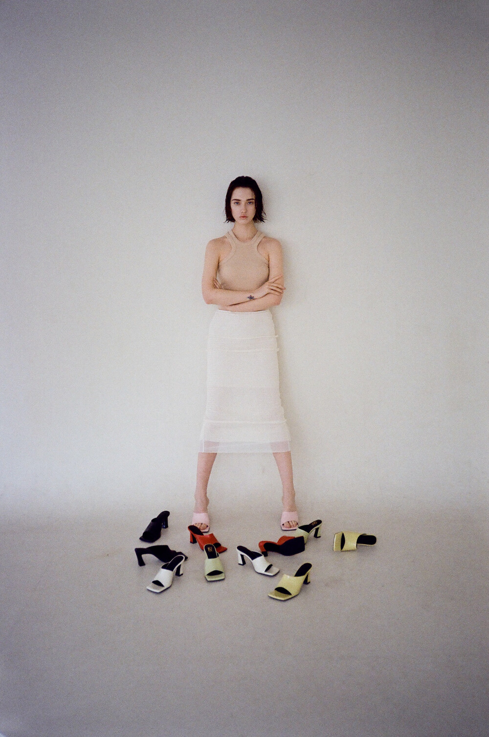토어 델프 뮬 입니다. 자연스러운 광택이 도는 양가죽으로 부드럽고 구김의 멋이 있습니다. 가죽 자체의 느낌을 살려 디자인 된 슈즈로 주름과 벗겨짐 등 가죽 자체의 미세한 스크래치는 자연스러운 현상입니다. 스퀘어 라스트에 스퀘어 굽으로 통일감을 주고 발등을 충분히 감싼 편하지만 트렌디한 무드의 뮬 입니다. 다리 라인과 발을 더 예뻐 보이게 해주는 7cm 굽이며 발바닥 쿠션을 적당히 넣어 편안한 착화감을 더했습니다.