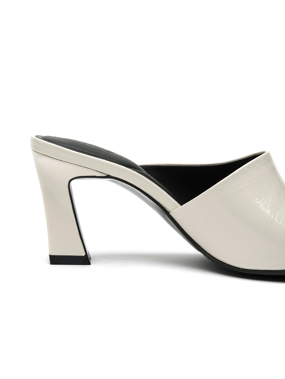 토어 델프 뮬 입니다. 광택이 살짝 도는 양가죽으로 부드럽고 자연스러운 구김의 멋이 있습니다. 가죽 자체의 느낌을 살려 디자인 된 슈즈로 주름과 벗겨짐 등 가죽 자체의 미세한 스크래치는 자연스러운 현상입니다. 스퀘어 라스트에 스퀘어 굽으로 통일감을 주고 발등을 충분히 감싼 편하지만 트렌디한 무드의 뮬 입니다. 다리 라인과 발을 더 예뻐 보이게 해주는 7cm 굽이며 발바닥 쿠션을 최대치로 넣어 편안한 착화감을 더했습니다.