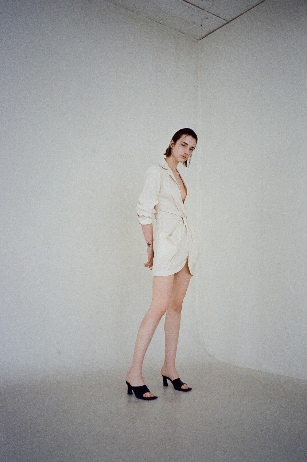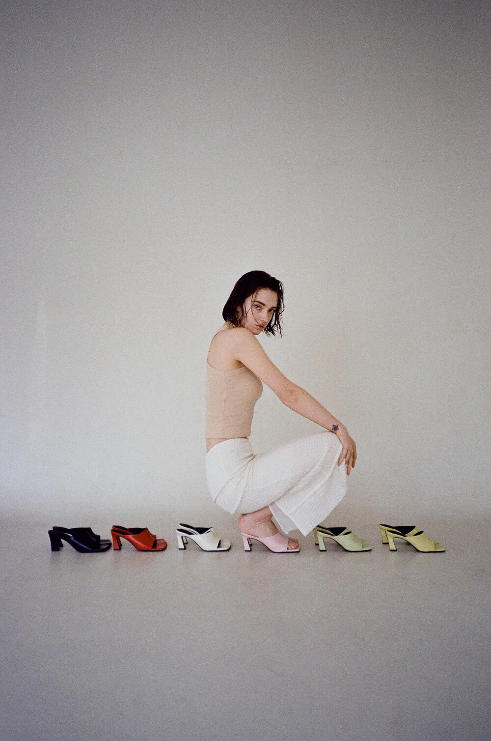 토어 델프 뮬 입니다. 광택이 살짝 도는 양가죽으로 부드럽고 자연스러운 구김의 멋이 있습니다. 가죽 자체의 느낌을 살려 디자인 된 슈즈로 주름과 벗겨짐 등 가죽 자체의 미세한 스크래치는 자연스러운 현상입니다. 스퀘어 라스트에 스퀘어 굽으로 통일감을 주고 발등을 충분히 감싼 편하지만 트렌디한 무드의 뮬 입니다. 다리 라인과 발을 더 예뻐 보이게 해주는 7cm 굽이며 발바닥 쿠션을 최대치로 넣어 편안한 착화감을 더했습니다.