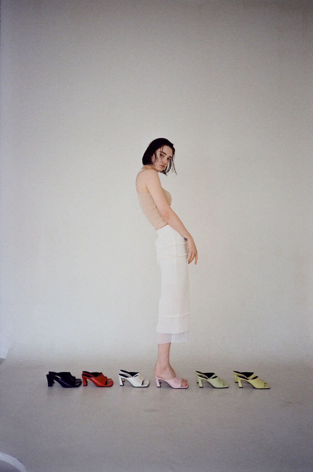 토어 델프 뮬 입니다. 광택이 살짝 도는 양가죽으로 부드럽고 자연스러운 구김의 멋이 있습니다. 가죽 자체의 느낌을 살려 디자인 된 슈즈로 주름과 벗겨짐 등 가죽 자체의 미세한 스크래치는 자연스러운 현상입니다. 스퀘어 라스트에 스퀘어 굽으로 통일감을 주고 발등을 충분히 감싼 편하지만 트렌디한 무드의 뮬 입니다. 다리 라인과 발을 더 예뻐 보이게 해주는 7cm 굽이며 발바닥 쿠션을 최대치로 넣어 편안한 착화감을 더했습니다.