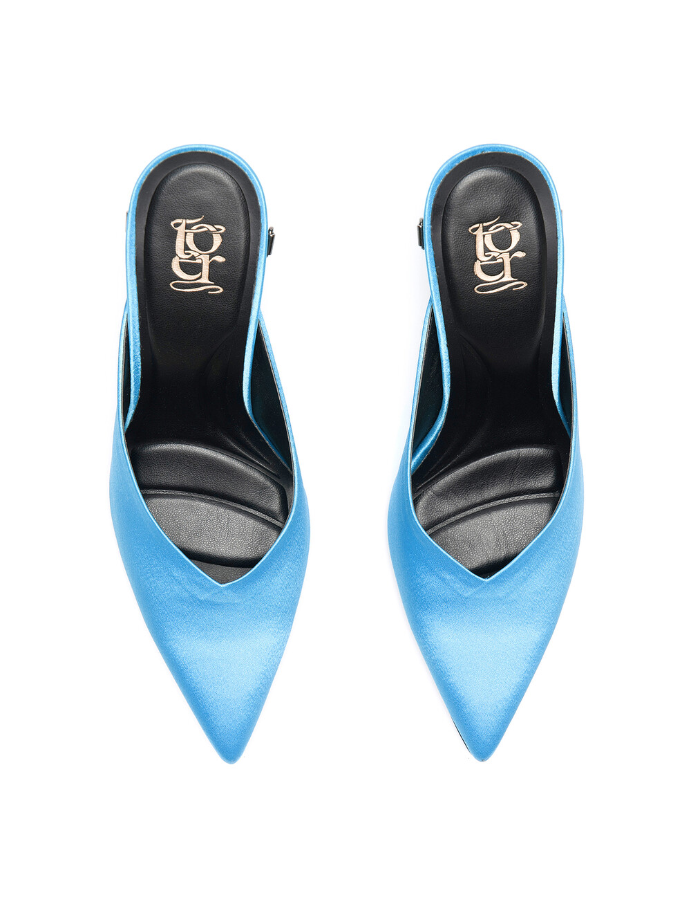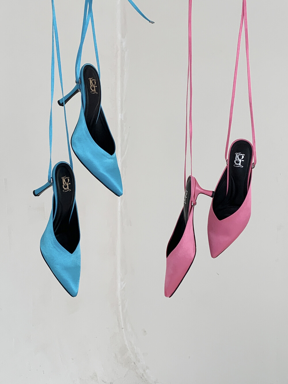 우아하고 섹시한 쉐입의 라스트로 제작된 비비드한 새틴 소재의 뮬로 원하는 굽 높이를 선택할 수 있습니다. 발목으로 묶는 끈은 탈부착이 가능해 가볍게 뮬로 신을 수도 발목에 자유롭게 묶어 다양하게 연출하여 신을 수도 있습니다. 은은하게 광택이 나는 새틴 원단으로 실제 색감이 훨씬 더 화사하고 비비드한 슈즈입니다.밑창은 미끄럼 방지가 되는 소재로 마무리했고 발바닥 쿠션을 최대치로 넣어 장시간 신고 걸어도 산뜻하고 편안하게 착화할 수 있습니다.