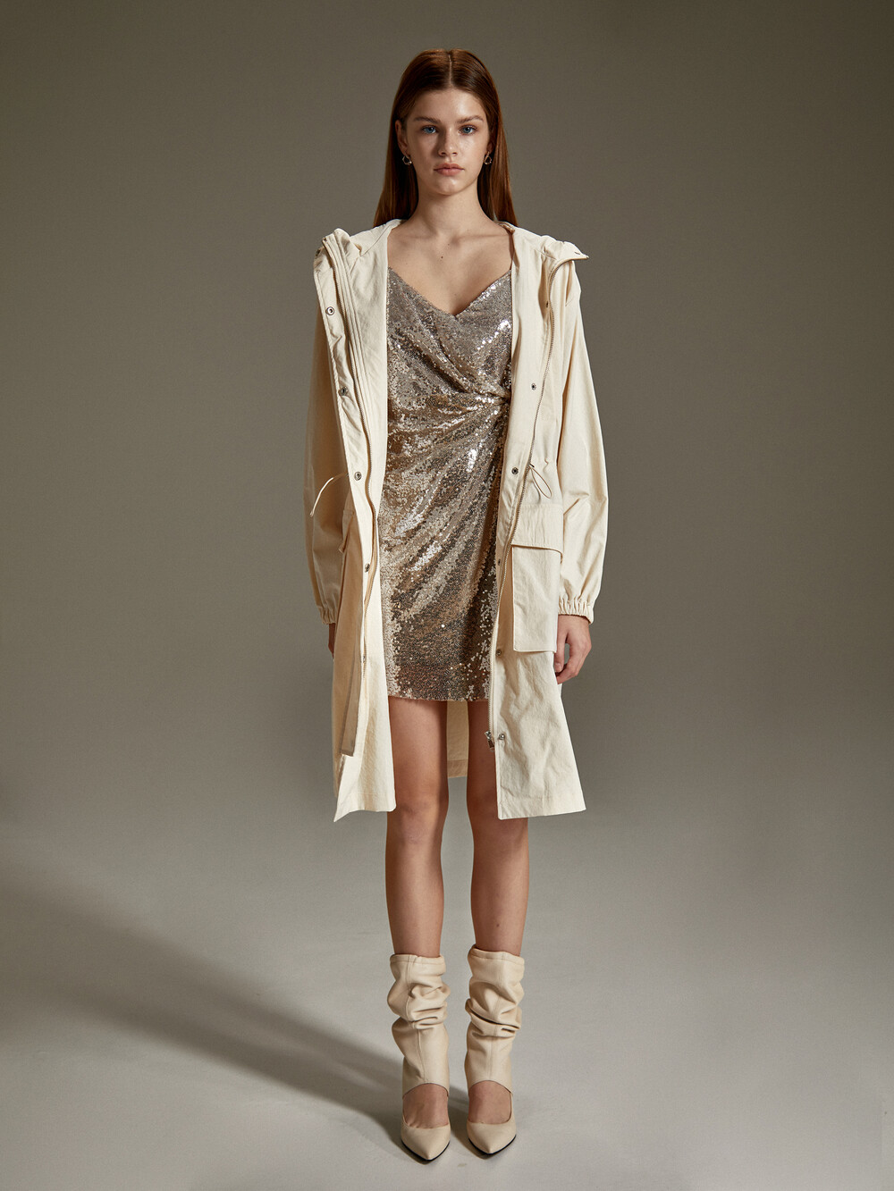 스토퍼와 연결된 조절 끈은 자칫 너무 여성스러워질 수 있는 디자인에 캐주얼한 포인트가 되어 스타일링이 다양하게 가능하도록 제작 했습니다. 끈은 재질에 따라 저렴해 보일 수 있기 때문에 컬러와 소재 수정을 여러번 했는데요, 끈 덕분에 여성스러운 스타일과 동시에 멋스러운 스타일링도 다양하게 연출이 가능합니다.